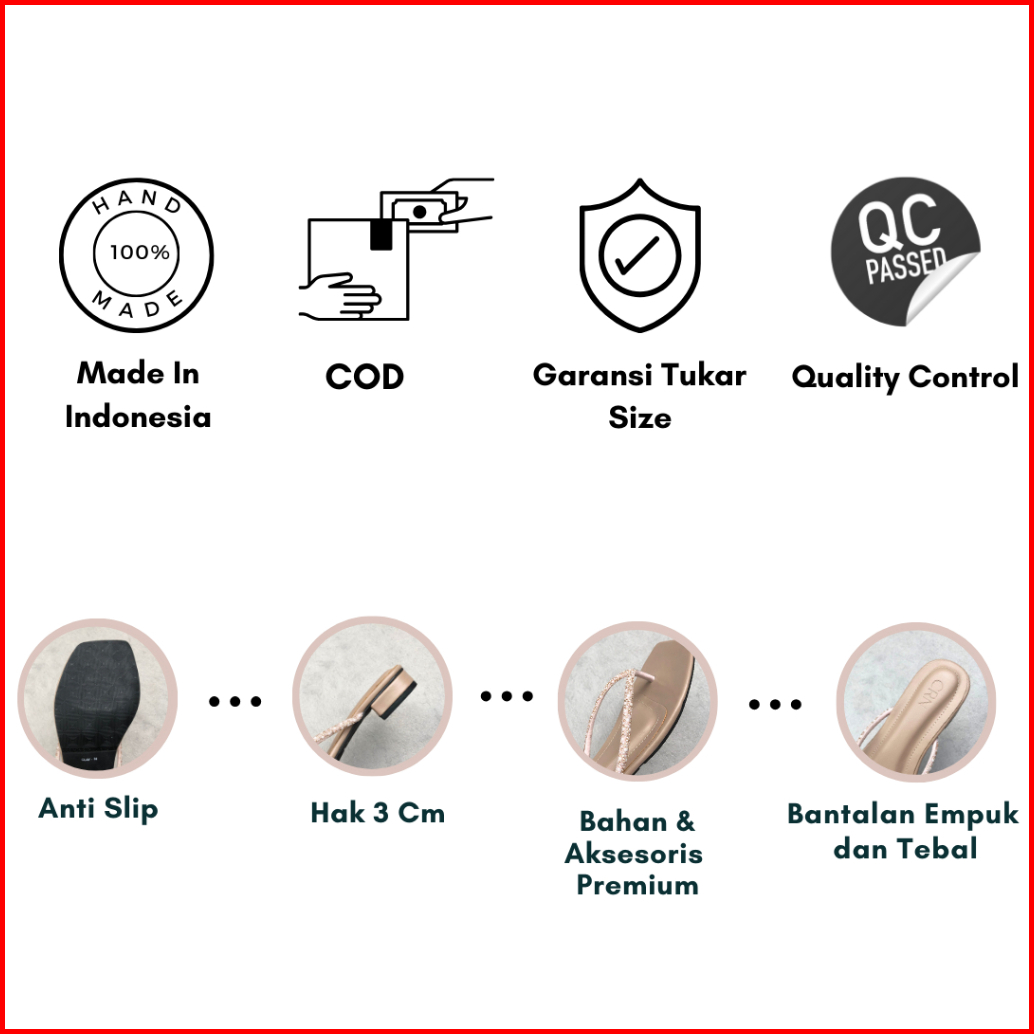 Crn Clay Sendal Heels Hak Kotak Wanita 3cm Tersedia Size 36-44
