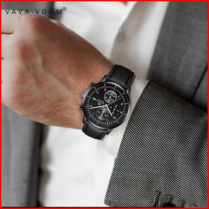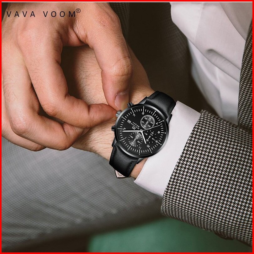 Vavavoom Jam Tangan Pria 100 Original Chrono Aktif Sporty Kulit Tahan Air Cowok Kronograf Luminous Quartz Analog Tanggal