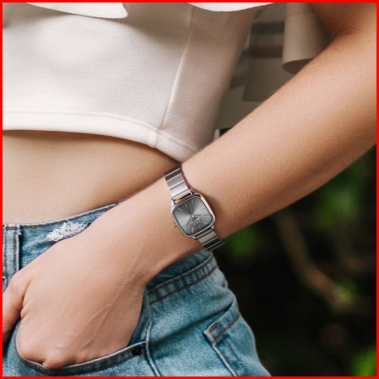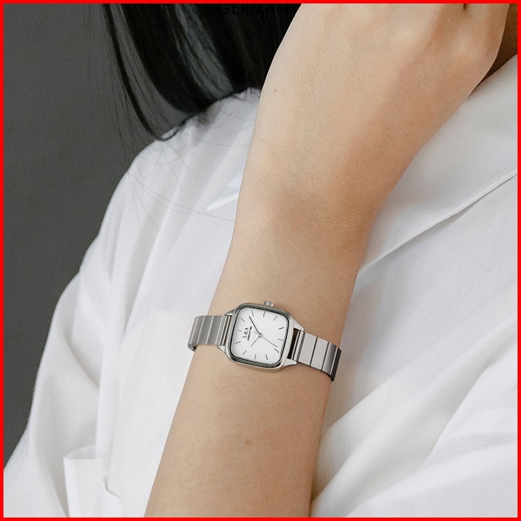 L A Jam Tangan Wanita Stainless Steel Simple Casual Dial Kotak Analog Wrist Watch Bahan Pu Kulit Untuk Daily Fashion