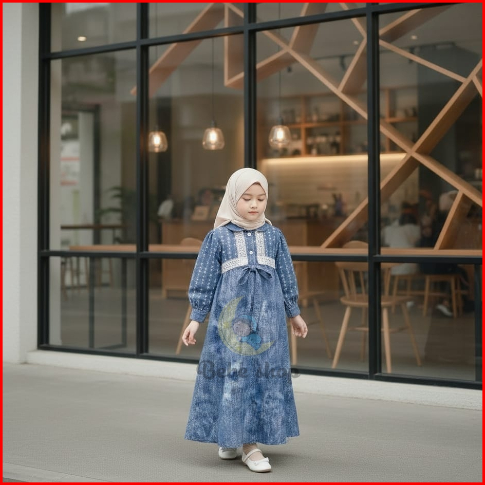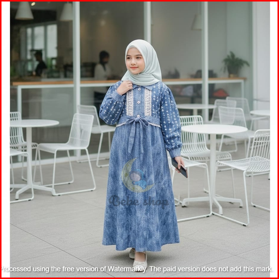 Gamis Anak Perempuan Kekinian Warna Denim Dan Biru Motif Bunga Bahan Cringkle Erora Tersedia Usia 1 Tahun Sampai 12 Tahu