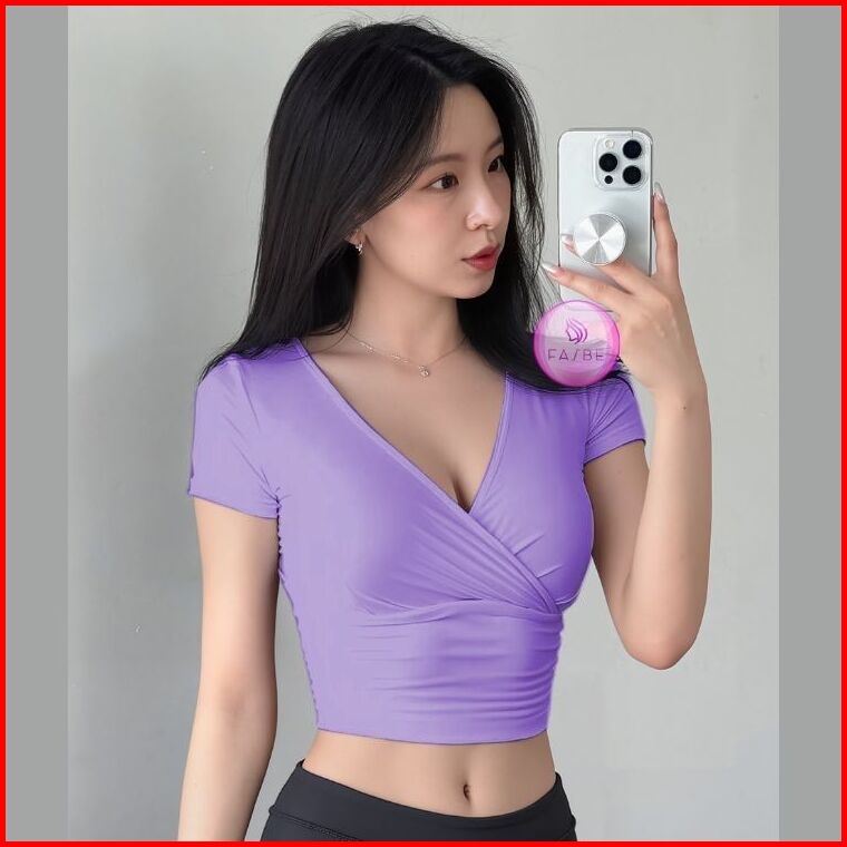 Croptop Wanita Silang Atasan Wanita Leher V Neck Kekinian Korean Sexy 8005