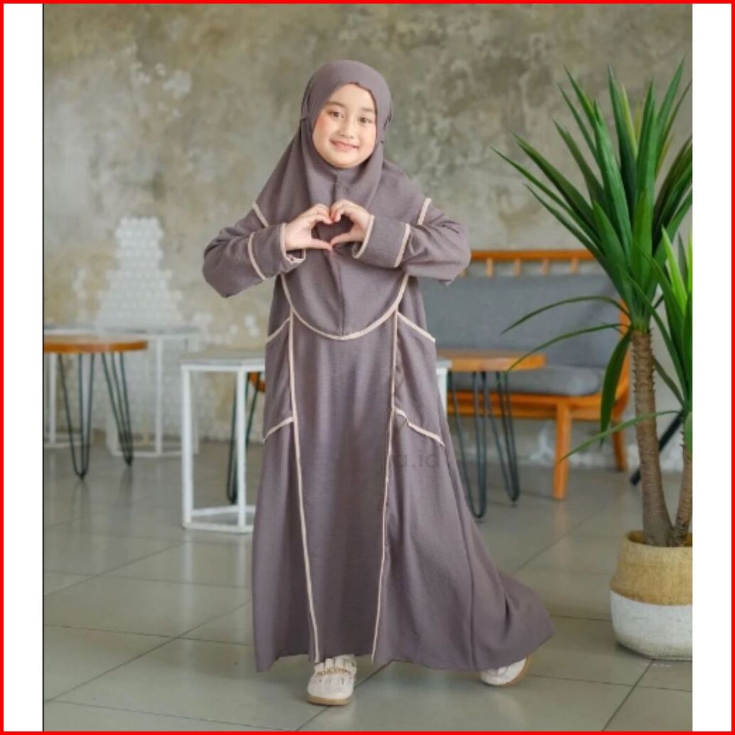 Abaya Anak Perempuan Set Hijab Gamis Muslim Anak 4-12 Tahun Bahan Premium Nyaman