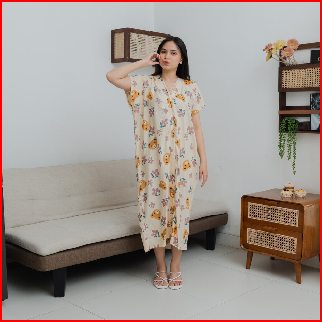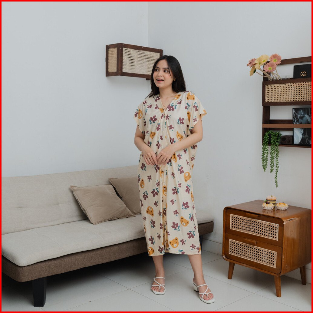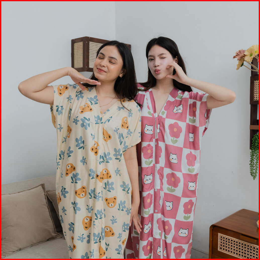 Daster Busui Kerah V Kekininan Estetik Gemes Vol. 6 Miw Miw Teddy Daun Daster Tidur Model Bali Rayon Arnisa