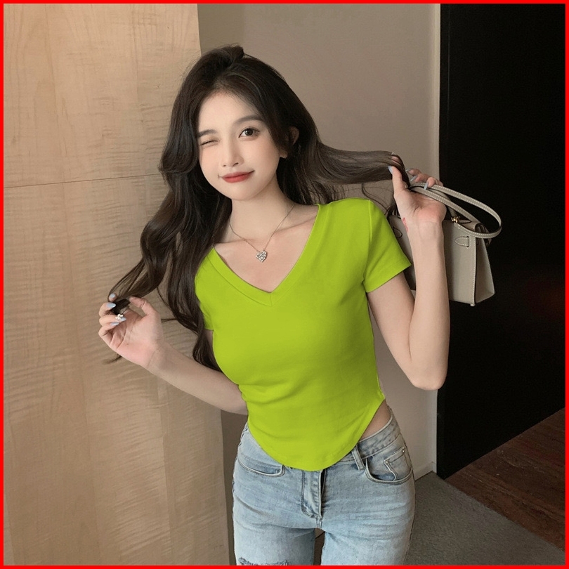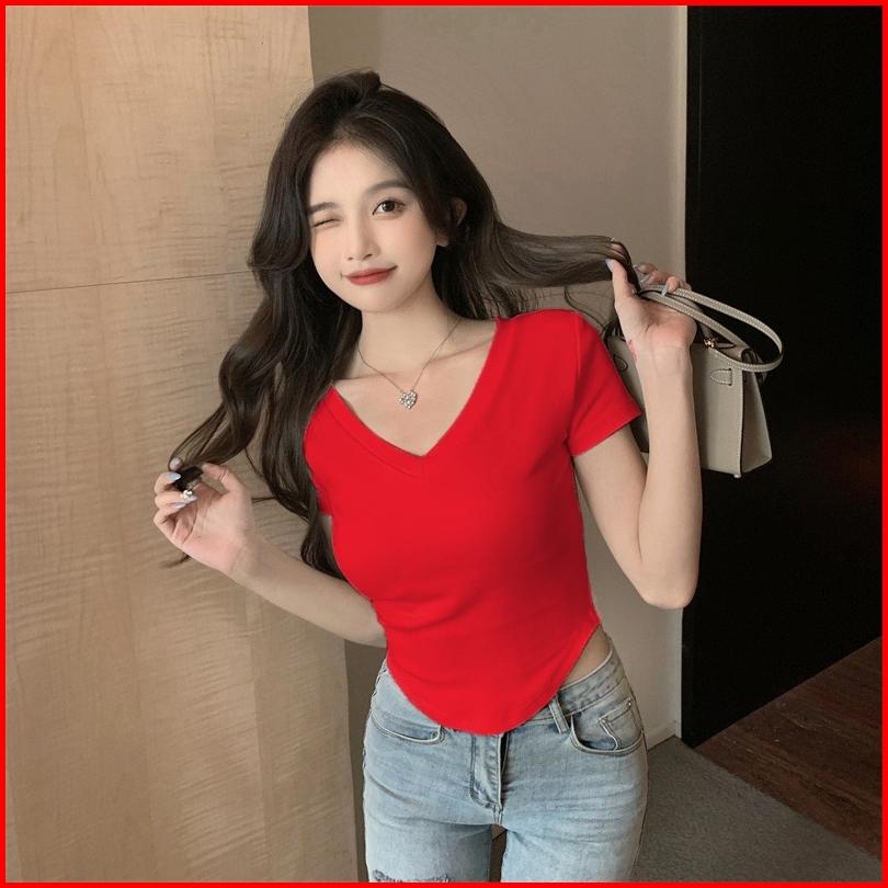 Kaos Wanita V Neck Atasan Polos Wanita Short Sleeve 6028