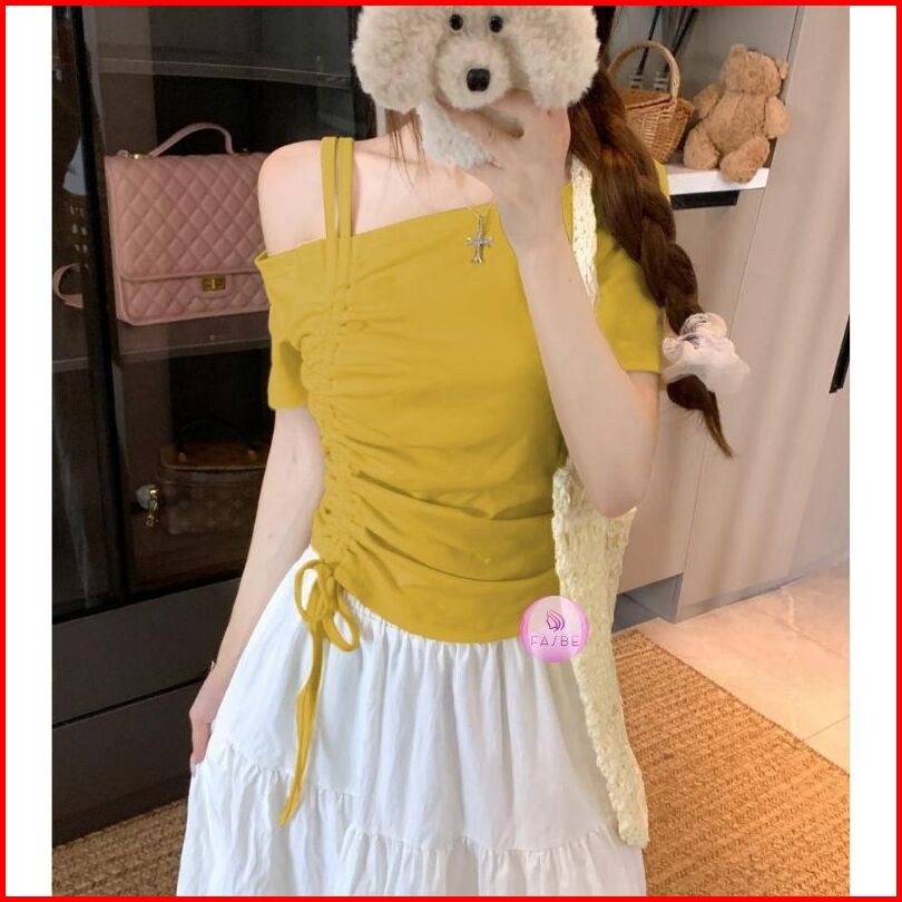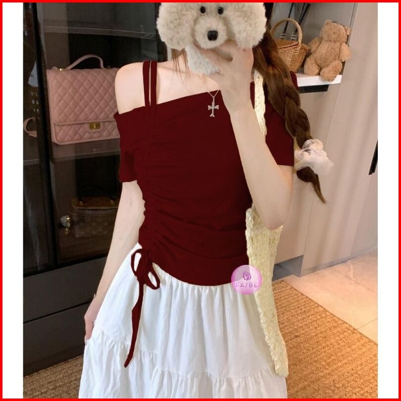 Crop Top Atasan Wanita Baju Wanita Blouse Tali Serut Korean Style 928
