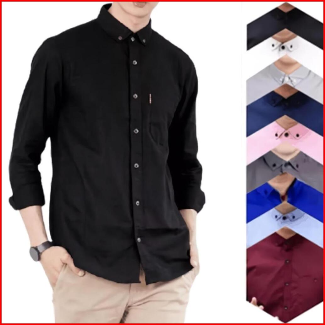 Baju Kemeja Atasan Pria Polos Kasual Formal Katun Lengan Panjang Pria Hem Cowok Keren Laki Laki