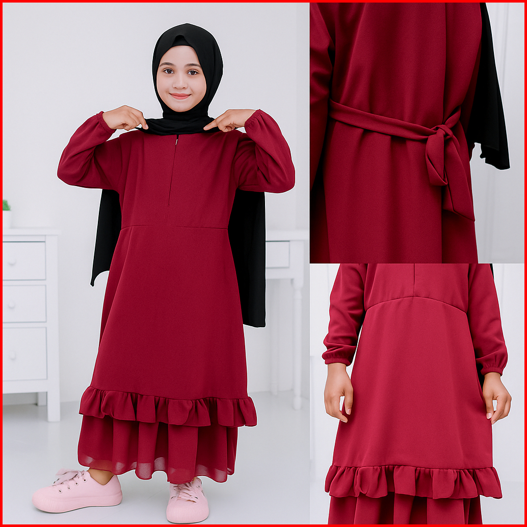 Gamis Ceruty Anak Usia 4-13 Tahun Model Malaysia Melayu Tanpa Hijab