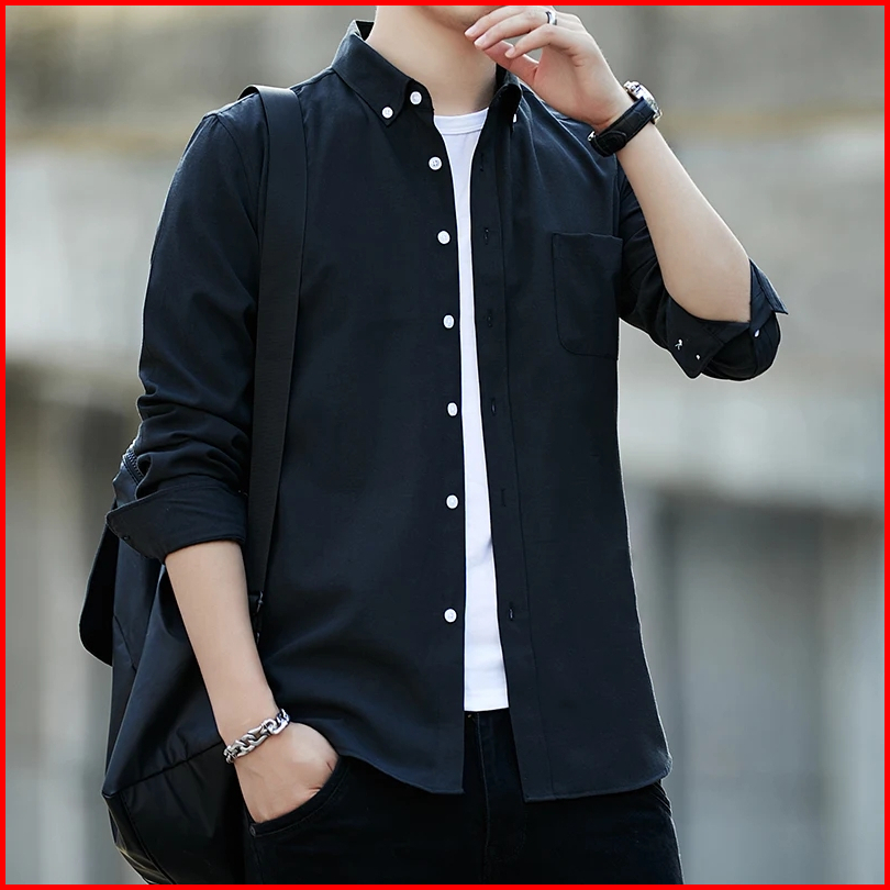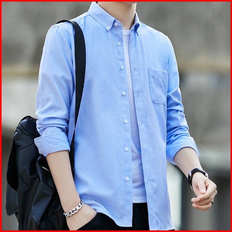 Baju Kemeja Pria Lengan Panjang Polos Sky Blue Hem Biru Langit Bahan Katun Premium