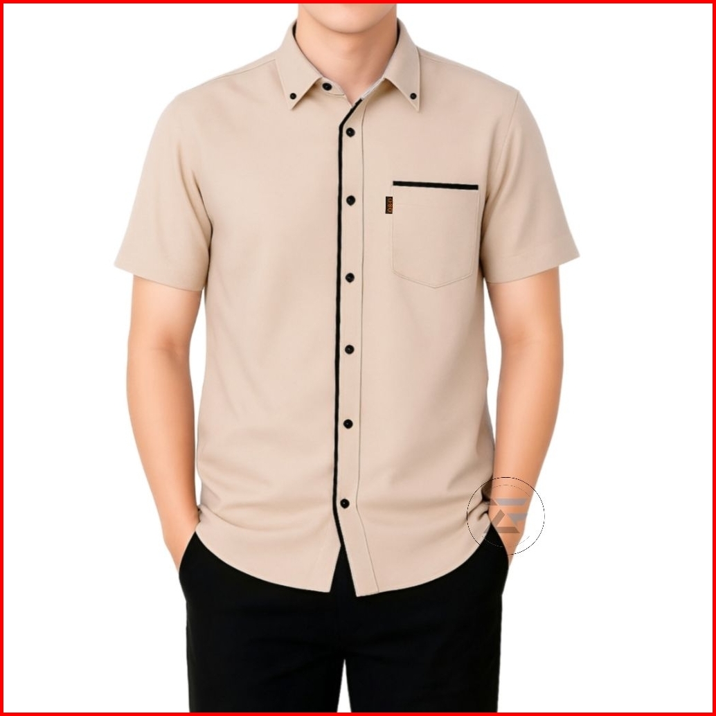 Kemeja Polos Pria Lengan Pendek Motif List Biru Muda Oxford Size M L Xl