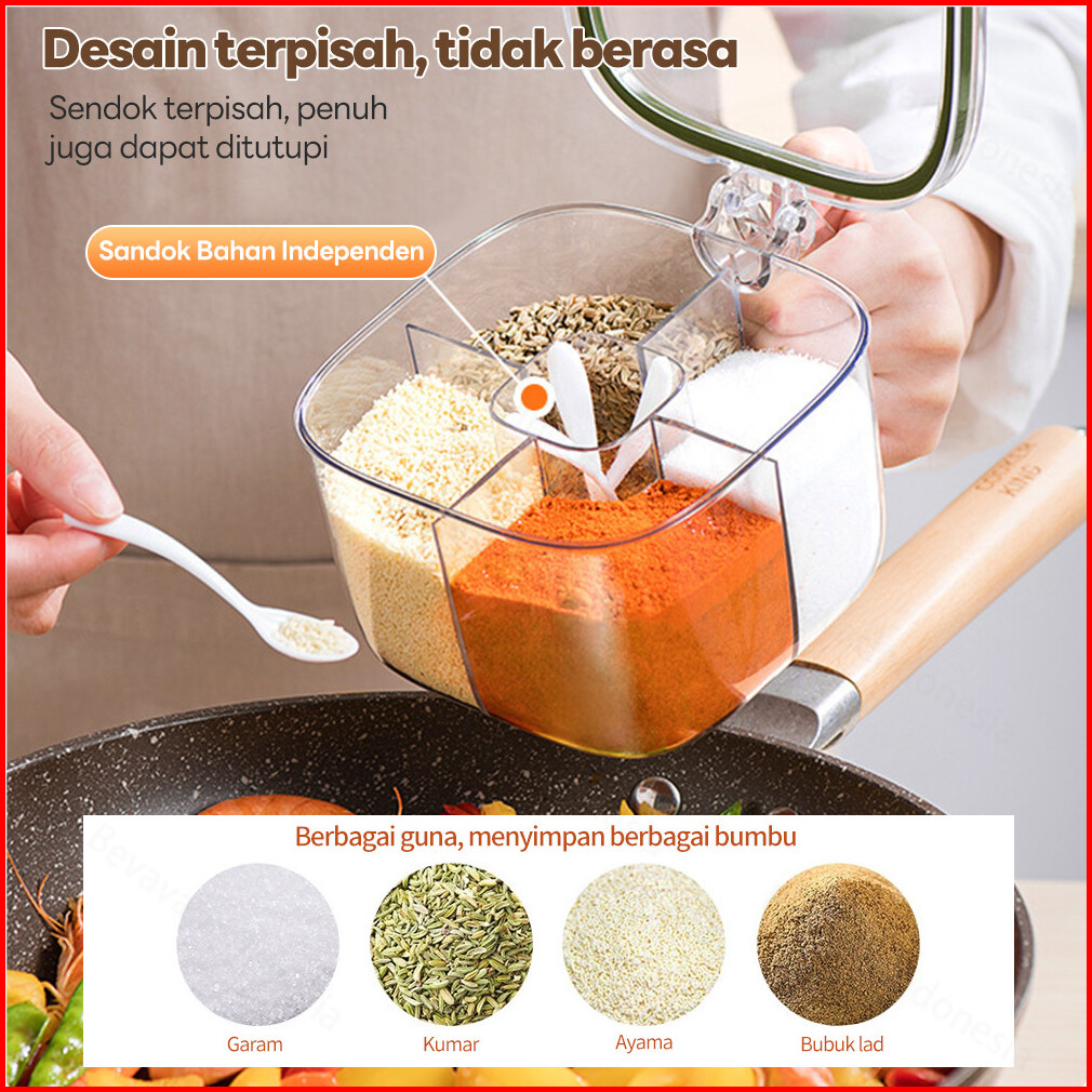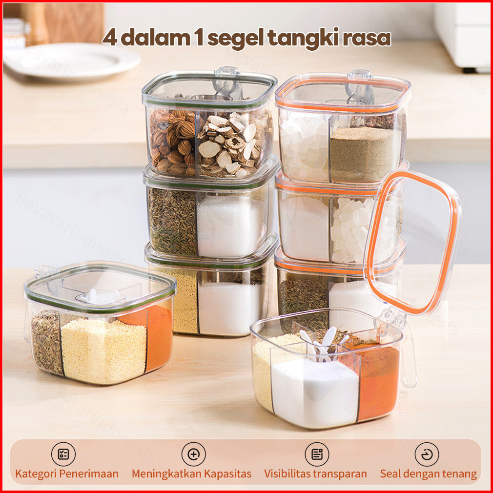 Bevavar Tempat Bumbu Dapur Set 4 In 1 Tempat Kotak Penyimpanan Bumbu Aesthetic Wadah Toples Bumbu Dapur Multifungsi