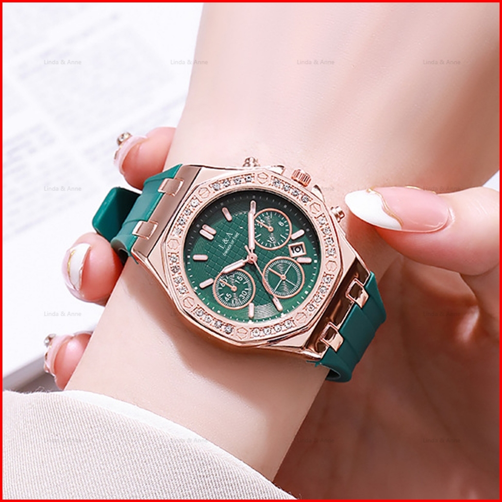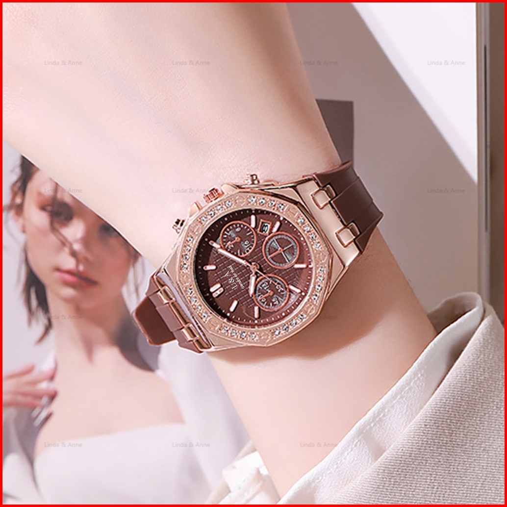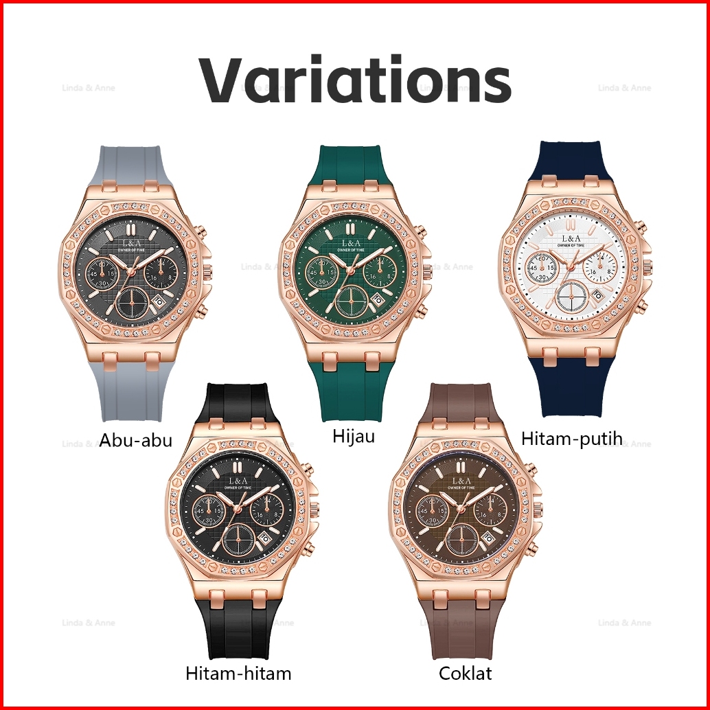 L A - Jam Tangan Wanita Dial Bulat Aksen Berlian Mewah Analog Quartz Watch