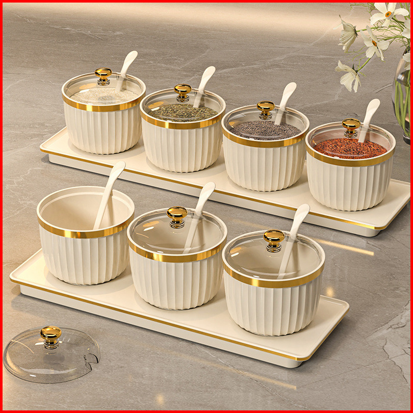 Tempat Bumbu Dapur Set Aesthetic Rak Bumbu Dapur Minimalis Plastik 3 Dan 4 Cup In 1 - Tbd016