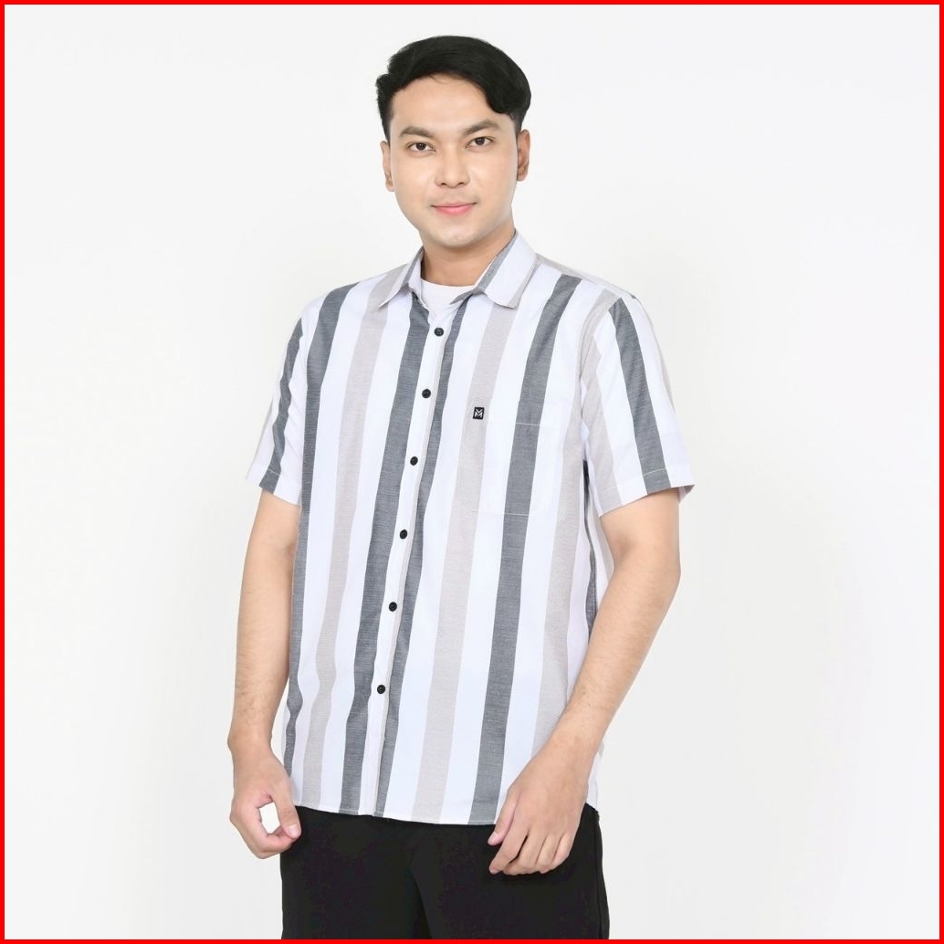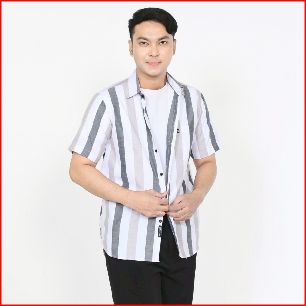 Kemeja Pria Salur Lengan Pendek Slimfit Bahan Katun Ukuran L Xl Casual Style