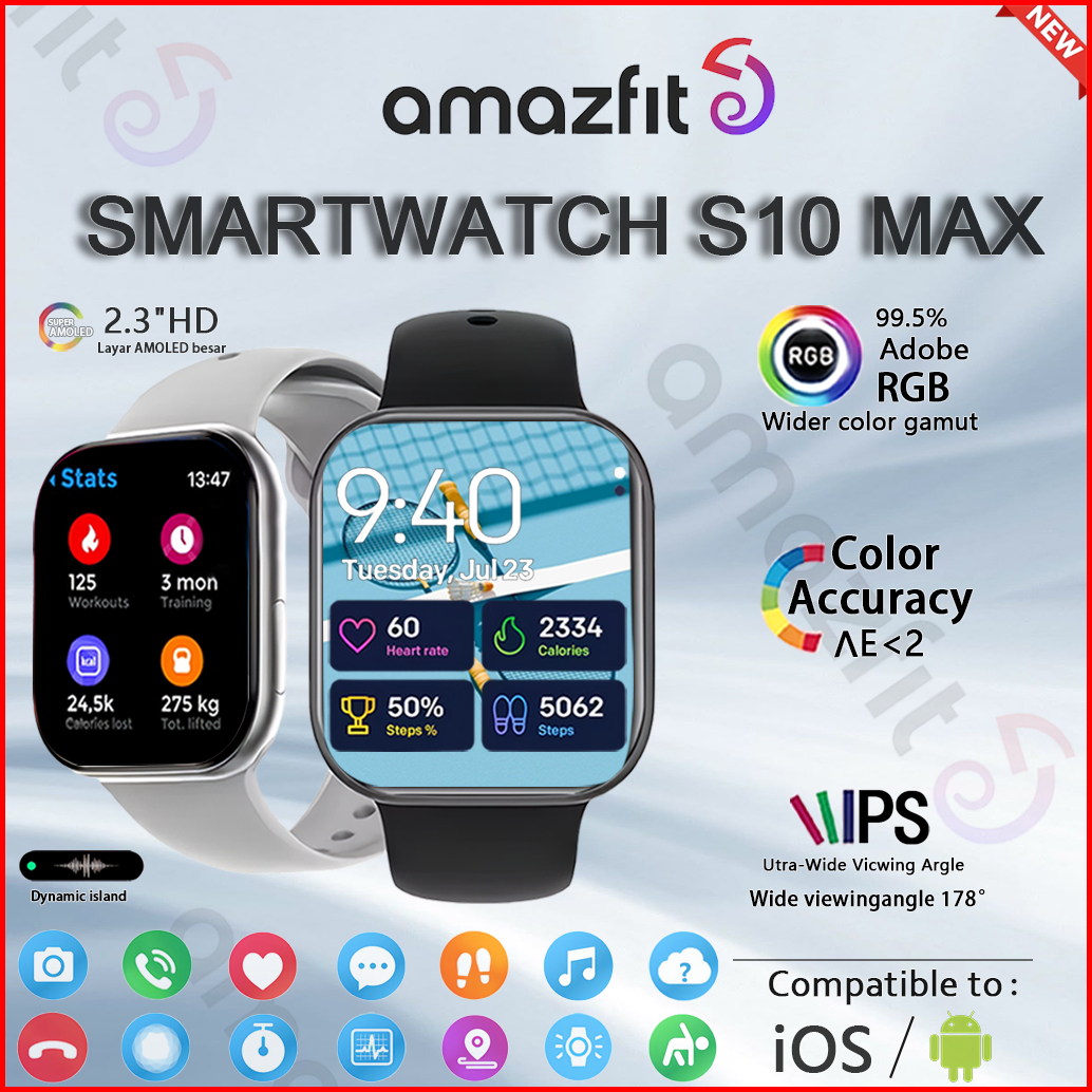 Garansi 100 Ori Amazfit Smartwatch Pria S10 Max 46mm Pulau Dinamis Pemantauan Kesehatan Mode Olahraga Panggilan Hd Tahan