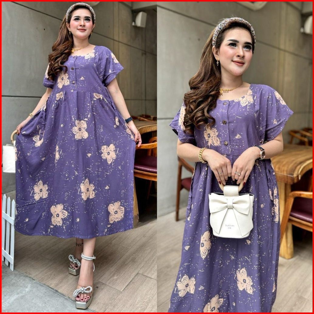 Reena - Daster Wanita Jumbo Bahan Rayon Adem Busui Bumil Kekinian Resleting Depan Ld 120 Terbaru