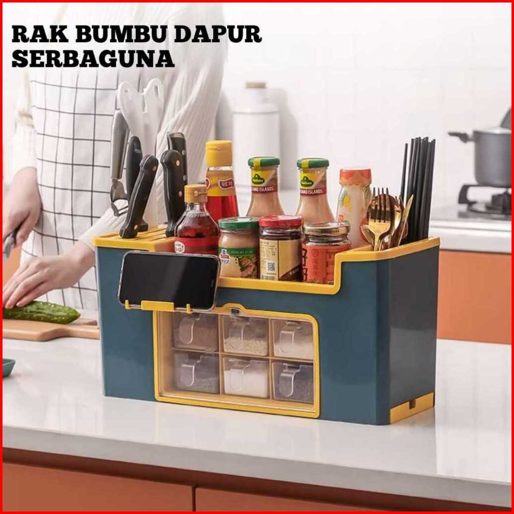 Kadula Rak Bumbu Dapur Multifungsi Dengan 6 Laci Tempat Penyimpanan Bumbu Dapur Alat Masak Kitchen