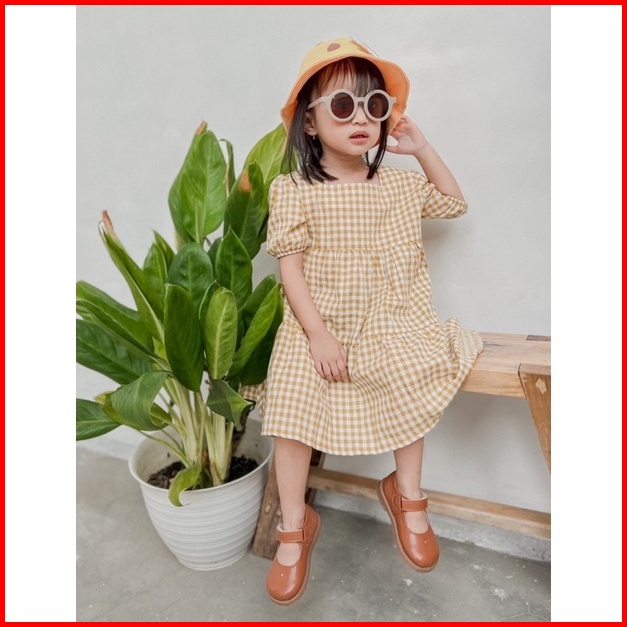 Yobebee Dress Kotak Anak Perempuan Usia 1 2 3 4 5 Tahun Mini Dress Casual Bayi Dan Anak Cewek