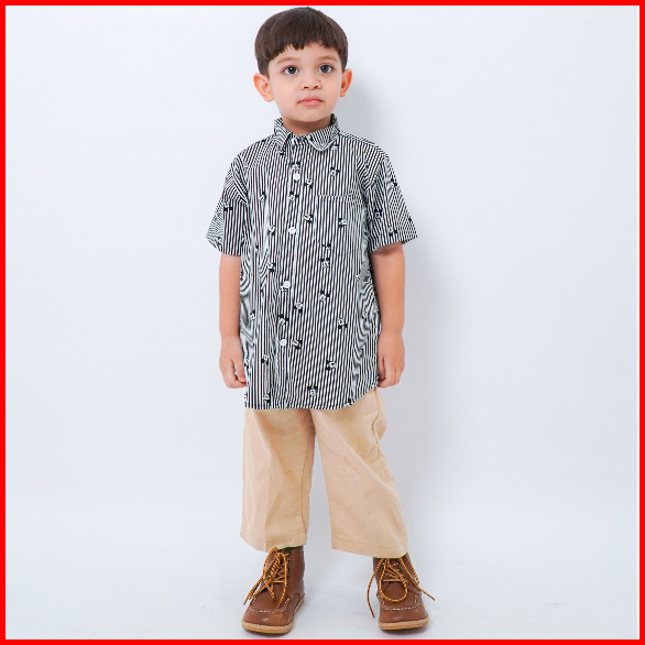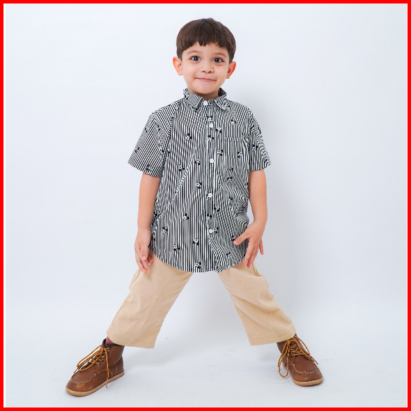 Yobebee Kemeja Katun Pattern Tangan Pendek Anak Laki Laki Usia 2 4 6 8 9 10 Tahun Atasan Casual Anak