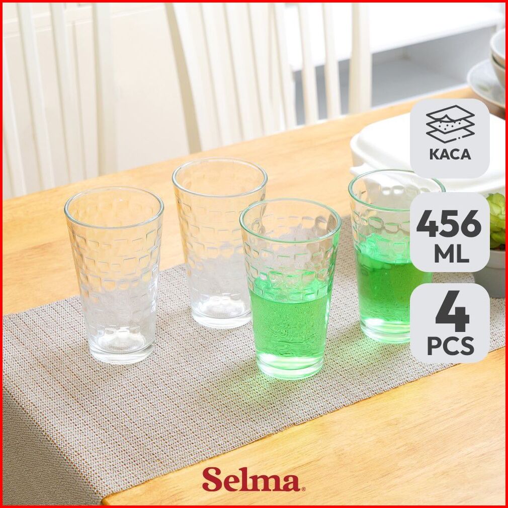 Selma Montana Gelas Tumbler Kaca 456 Ml Set 4 Pcs Transparan Cup Wadah Air Minum Tempat Minuman Drinkware