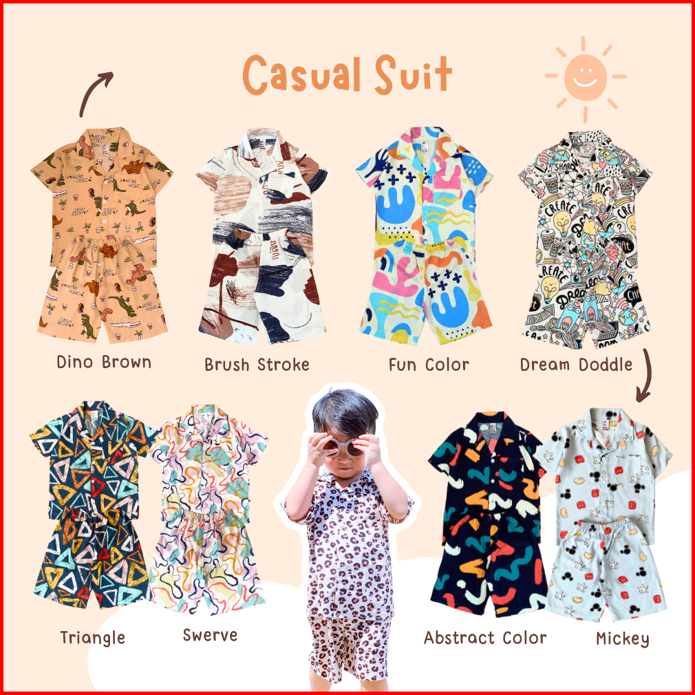 Yobebee Casual Suit Set Rayon Anak Usia 2-10 Tahun Baju Tidur Piyama Motif Anak Laki Laki Perempuan