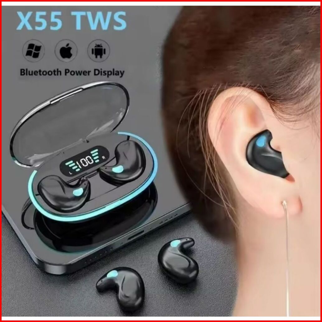 X55 Tws Bluetooth Earphone Wireless Headset Bass Stereo Nyaman Dipakai Cocok Musik Gaming Harian