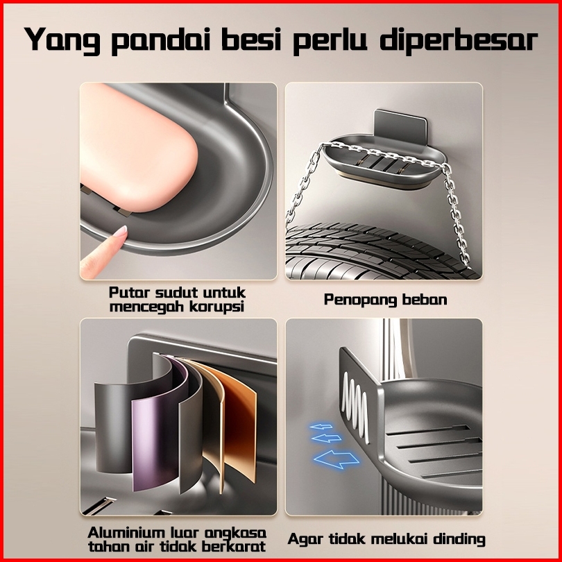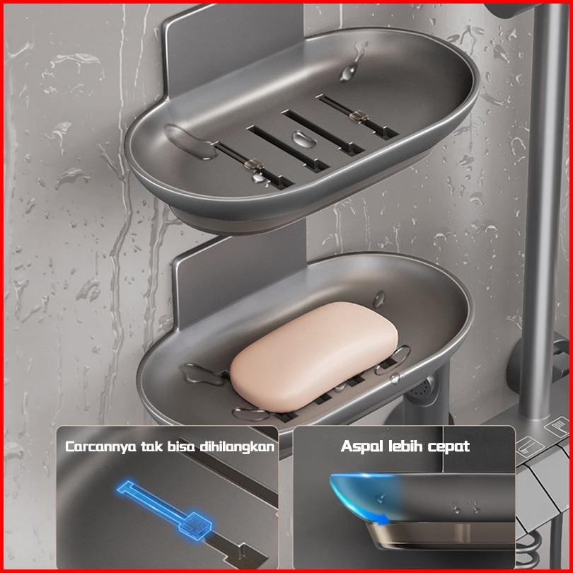 Bluerabbit Tempat Sabun Dinding Kamar Mandi Aluminium Gantung Tahan Air Tidak Perlu Pengeboran