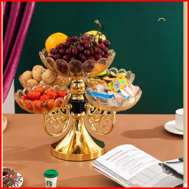 Wadah Buah 2 Tingkat 5in1 Estetik Piring Cemilan Bisa Putar 360 Derajat Tempat Permen Dekorasi Kristal Hiasan Aesthetic