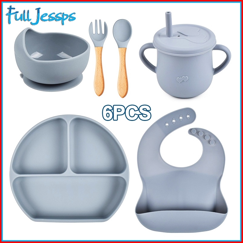 6pcs Peralatan Makan Bayi Bpa Free Tempat Makan Bayi Silikon Non Slip Premium Baby Feeding Set