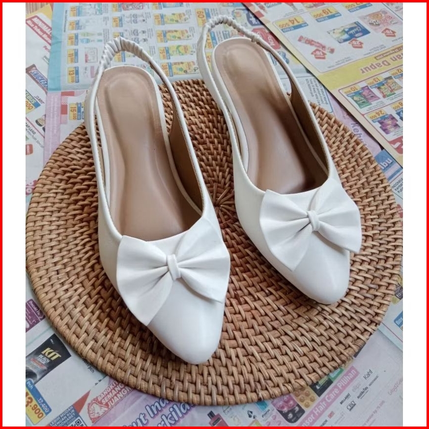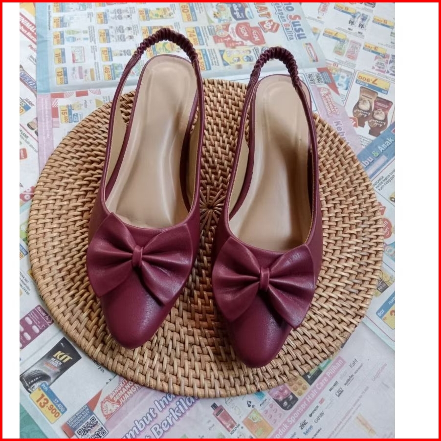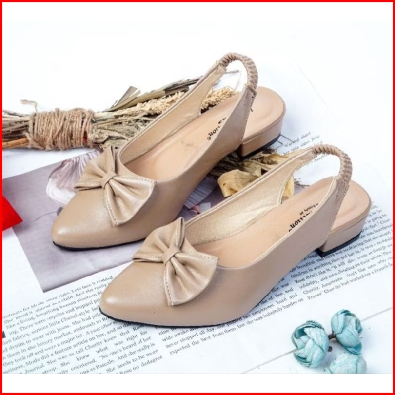 Sendal Wanita Kantoran Hak Tahu 3cm Pita Kupu2 Tali Karet Blakang