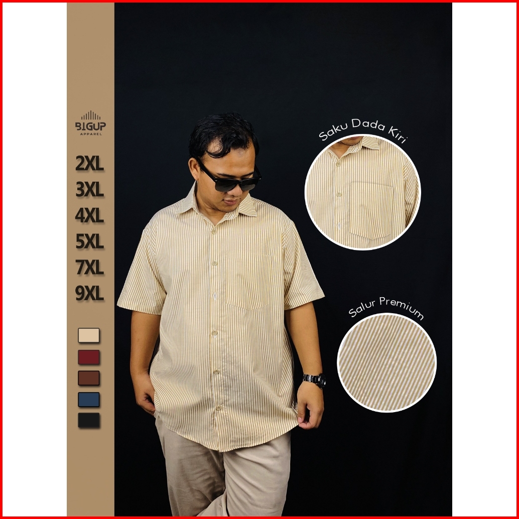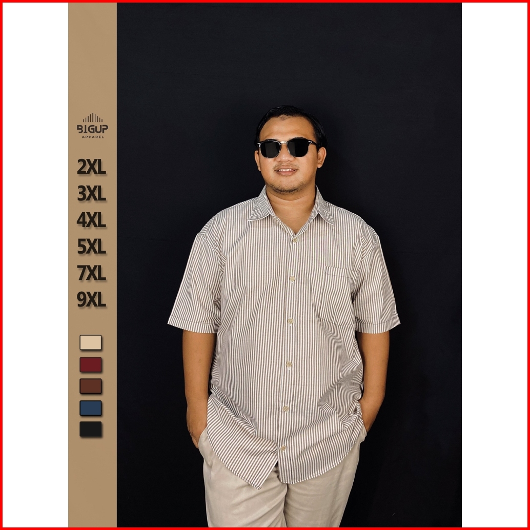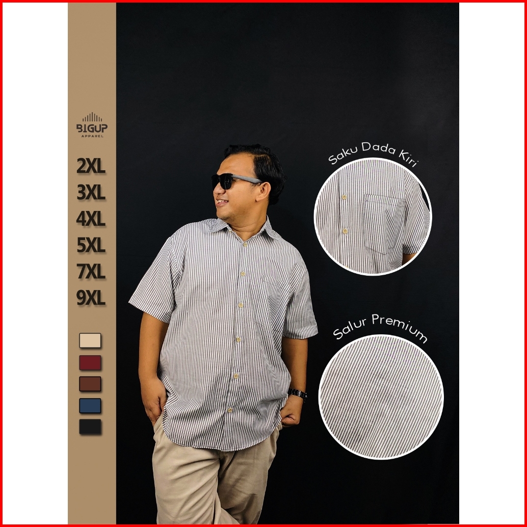 Bigman Apparel Kemeja Stripe Lengan Pendek Jumbo Oversize Bigsize Xxl Xxxl 4xl 5xl 7xl 9xl