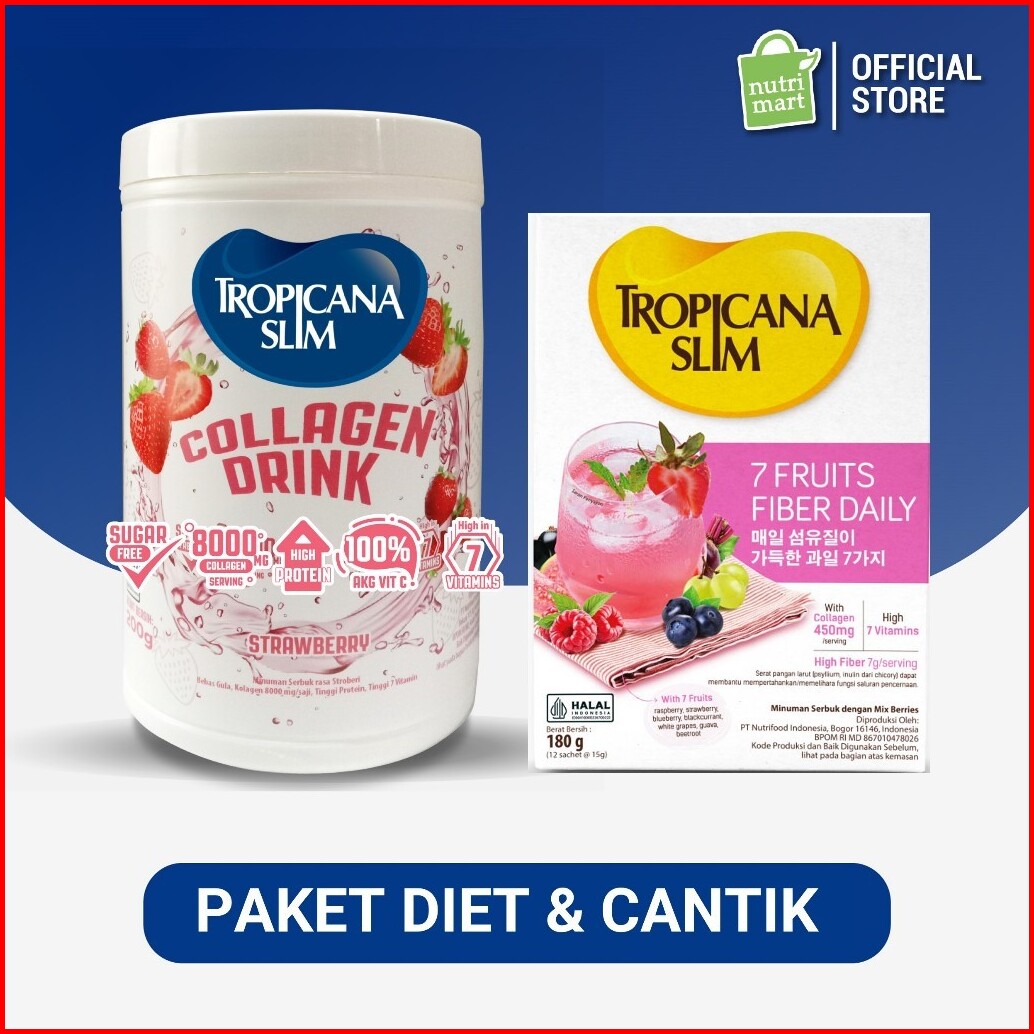 Paket Diet Cantik - Tropicana Slim Collagen Drink Srawberry 200g Tropicana Slim 7 Fruits Fiber Daily 12 Sachet - Minuman