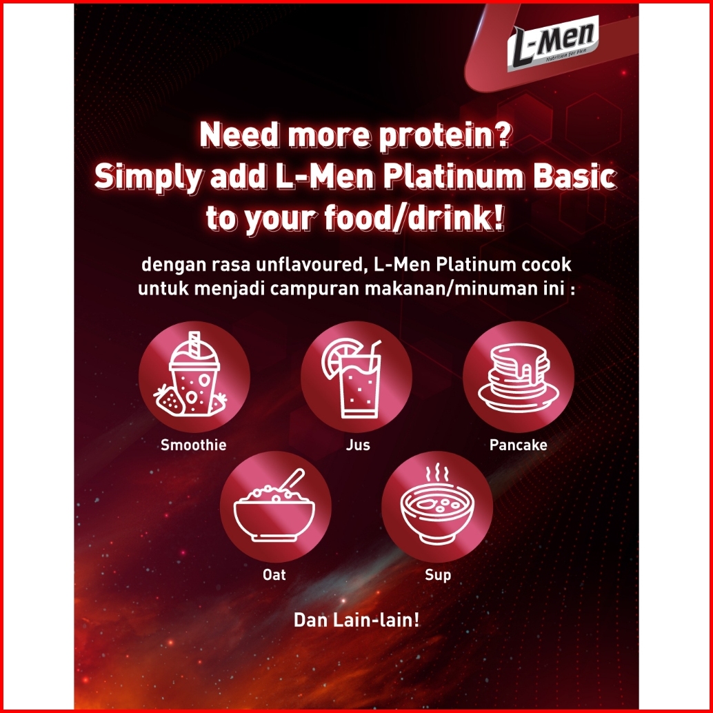 L-men Platinum Basic Whey Protein Unflavoured 800gr 1 8lbs - 25g Whey Protein 24 Serving 6 5g Bcaa