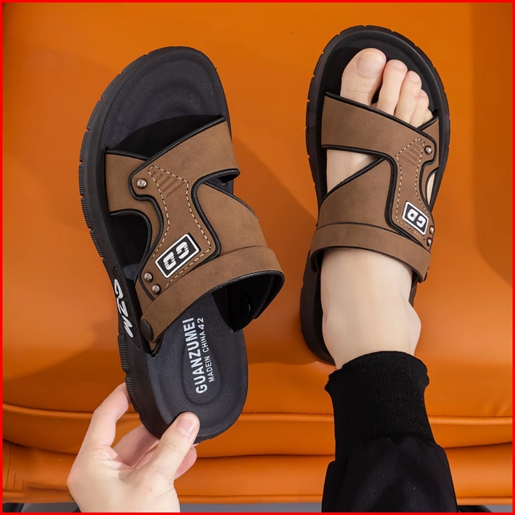 Sandal Pria Kulit 2025 Sendal Cowok Crocs Selop Gunung Karet Kerja Slop G-04