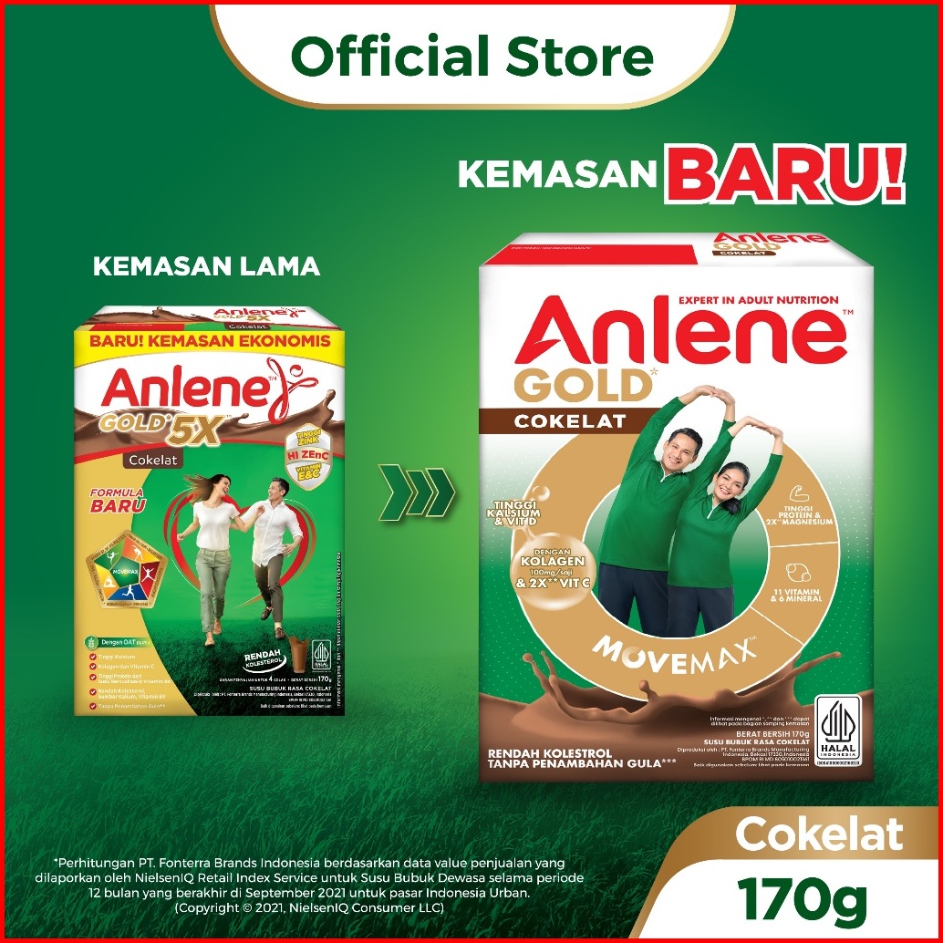 Anlene 5x Susu Bubuk Dewasa Cokelat 170g - Nutrisi Tinggi Kalsium Untuk Tulang Sendi Dan Otot
