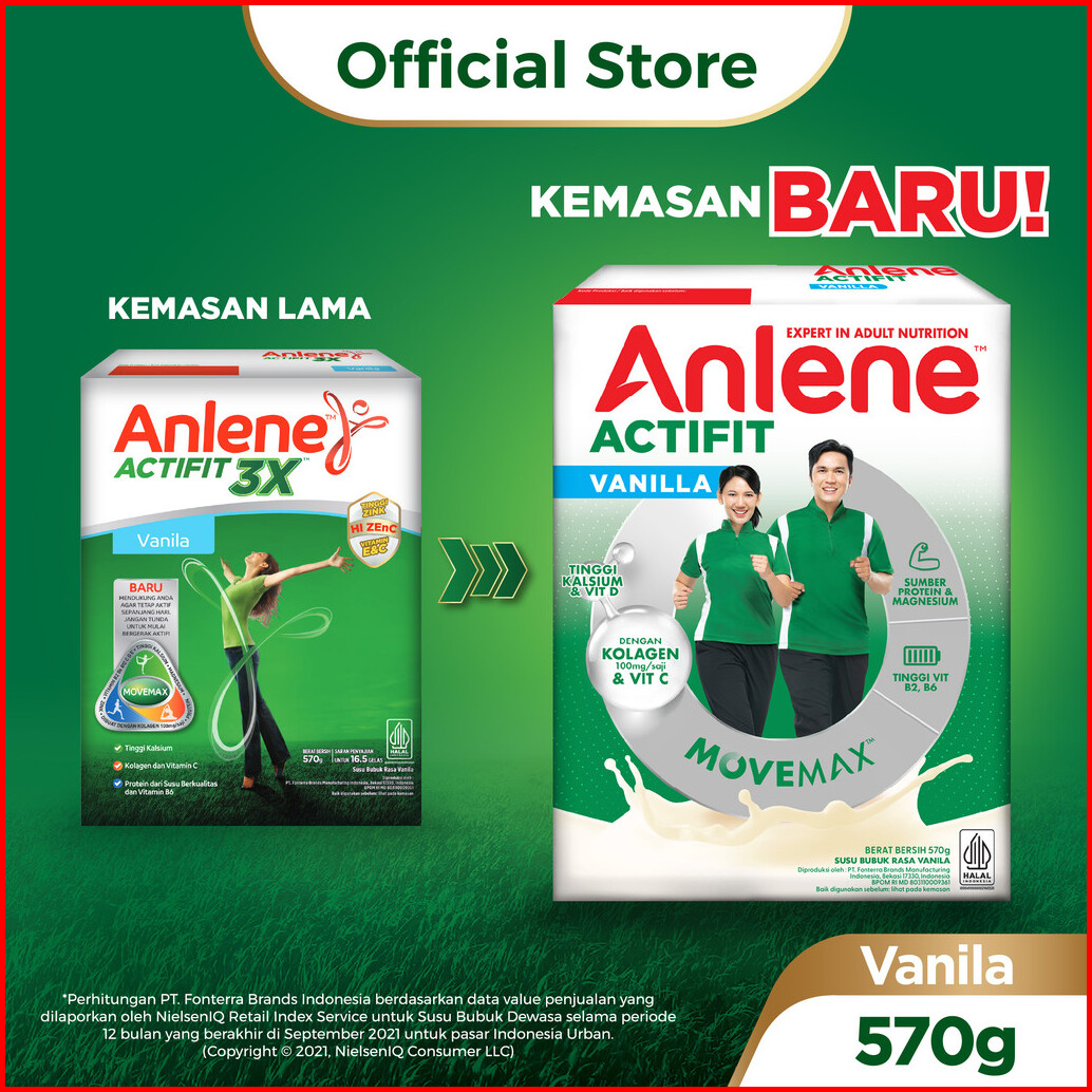 Anlene Actifit 3x Susu Bubuk Dewasa Vanila 2 X 570g - Nutrisi Tinggi Kalsium Untuk Tulang Sendi Dan Otot