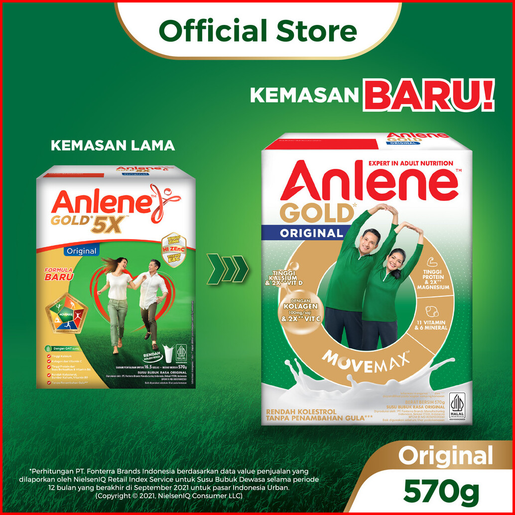 Anlene 5x Susu Bubuk Dewasa Original 2 X 570g - Nutrisi Tinggi Kalsium Untuk Tulang Sendi Dan Otot