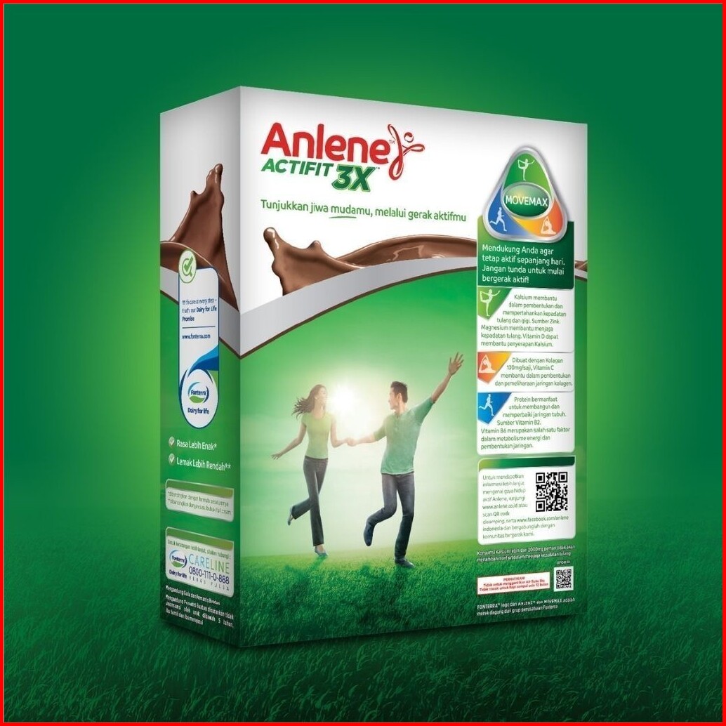 Anlene Actifit 3x Susu Bubuk Dewasa Cokelat 3 X 580g - Nutrisi Tingi Kalsium Untuk Tulang Sendi Dan Otot