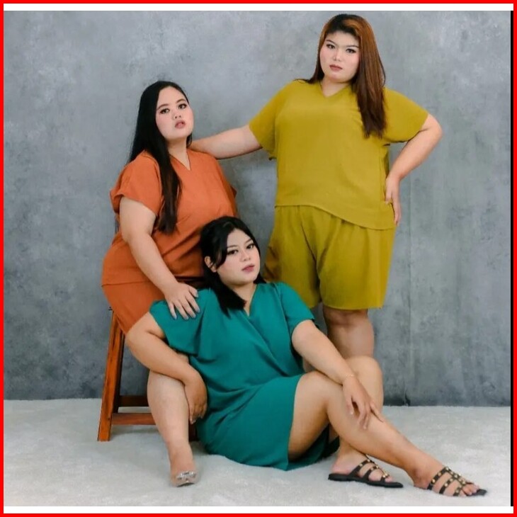 Lagi Discont Setelan Jumbo One Set Jumbo Setelan Kringkel Baju Murah Setelan Wanita One Set V Neck