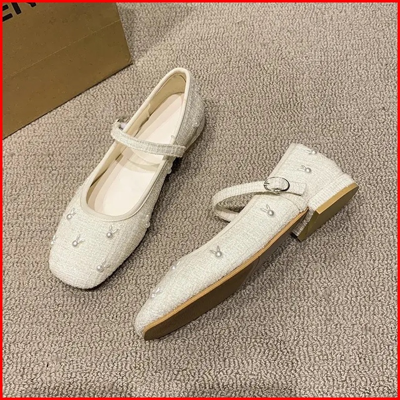 Sepatu Heels 3cm Casual Korea Wanita Tali Rabbit Knit