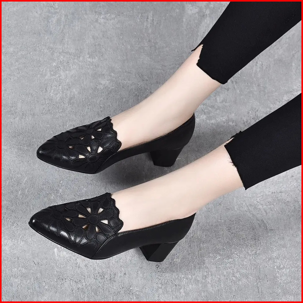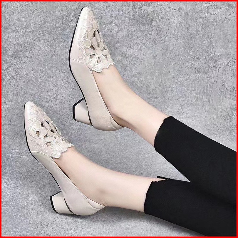 Sepatu Heels Wanita 5cm Kulit Sintetis Simple Elegan Untuk Kerja