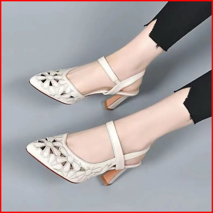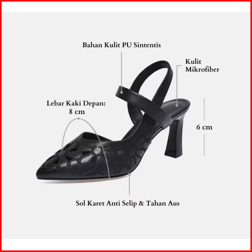 Sepatu Heels Best Seller Wanita Import Bordir Bunga Heels 6 Cm Branded