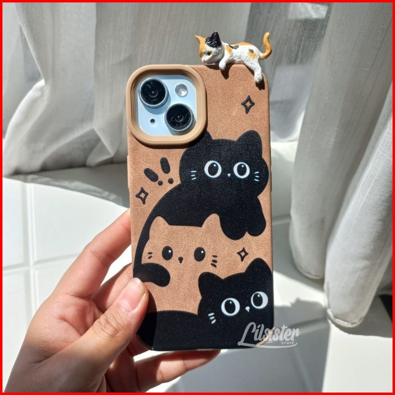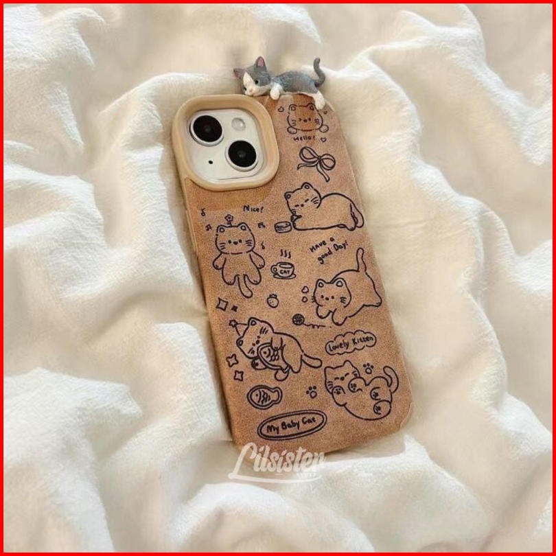 Lilsisterstuff Iphone 17 Series Lazy Cat With 3d Decorative Phone Case 11 12 13 14 15 16 17 Pro Promax