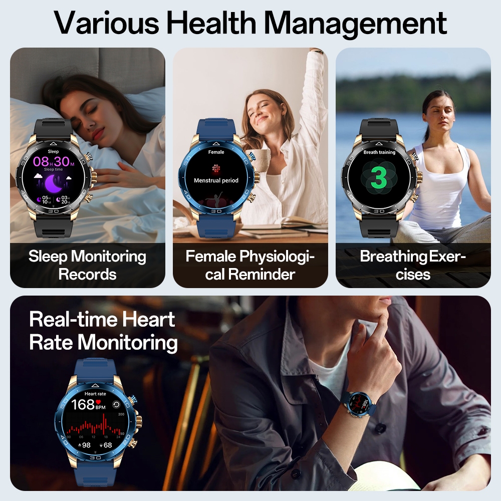 [2025 Baru] Aolon Luxor Smartwatch Pria Original Bulat Strava | Gold-plated metal middle frame | Luxurious Business Design | 24-hour real-time heart rate Smart Watch GT 6 Tahan air