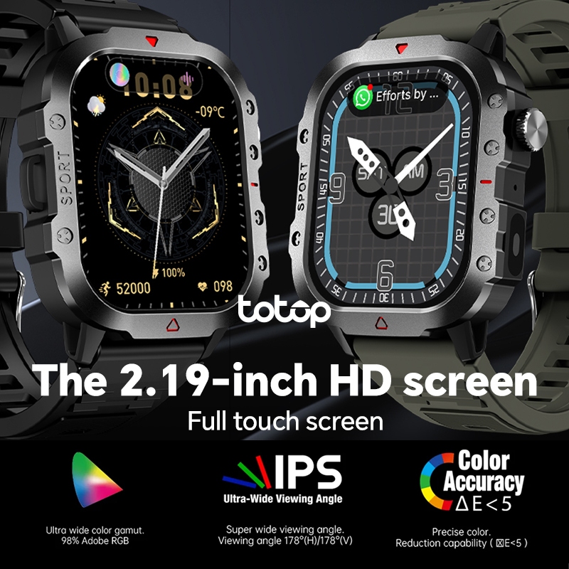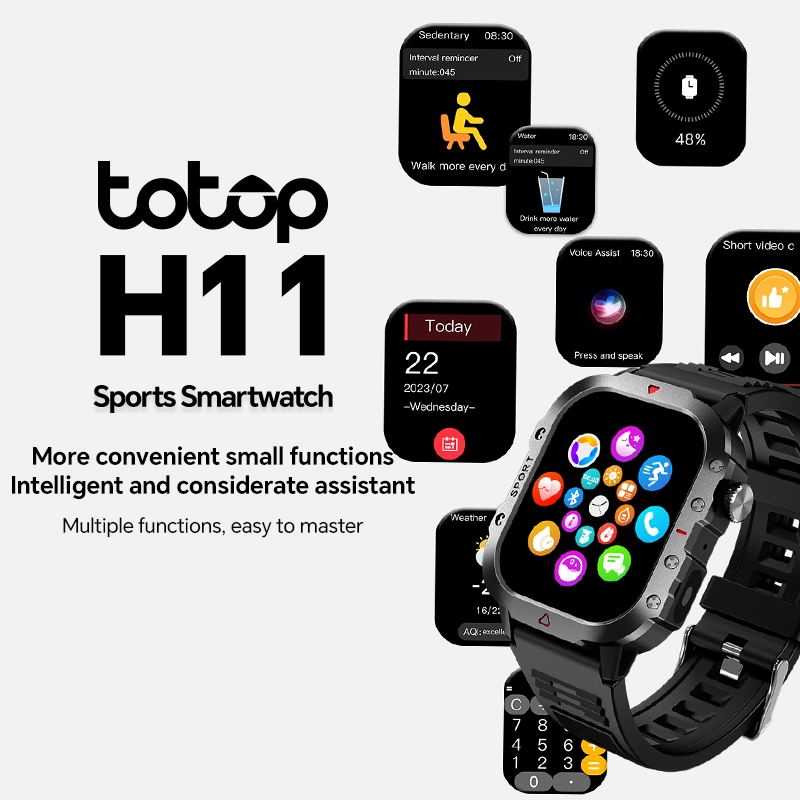 Totop SmartWatch H11 Sports Bluetooth Smartband 2.19 inch HD Screen Full Touch Bluetooth Call Tangan Sports Flashlight Calculator Custom Wallpaper Music Android IOS jam