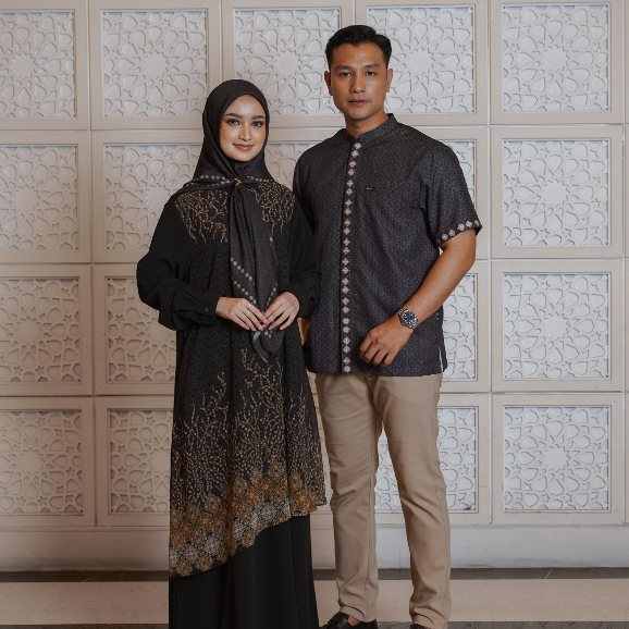 Elzatta Baju Sarimbit Terbaru Gamis Geo Al-Bukhari Series Hitam