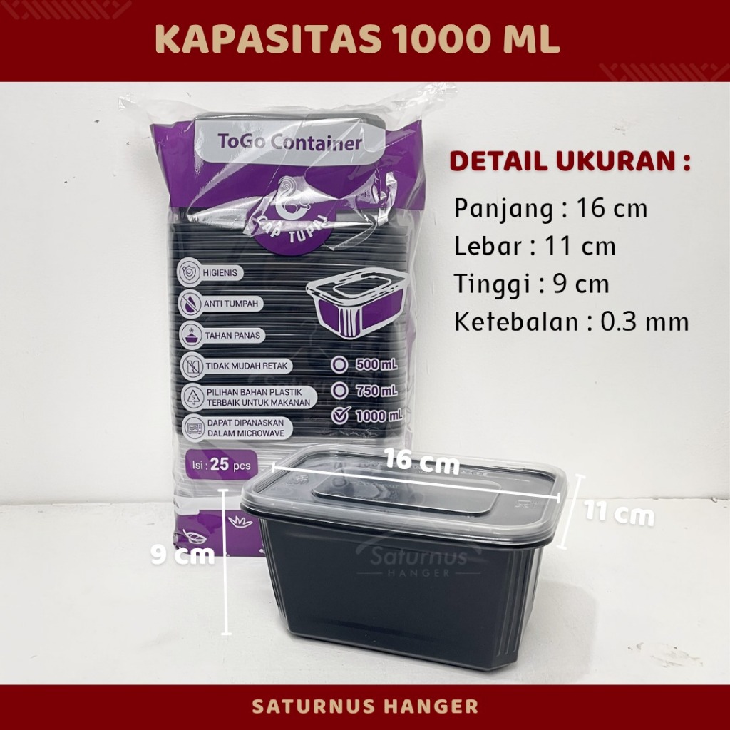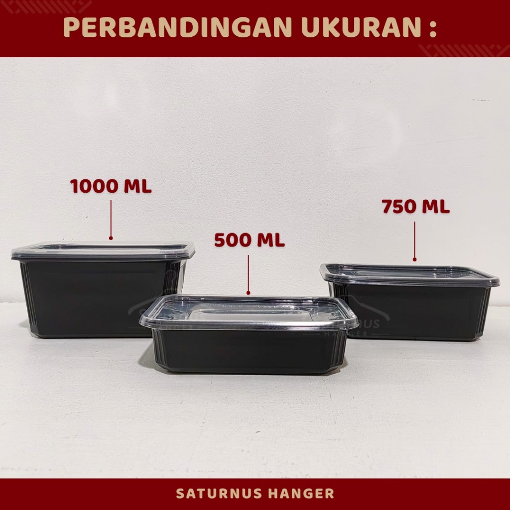 Tempat Makan Plastik Hitam Persegi Thinwall 500 / 750 / 1000 ml Kotak Makan plastik hitam food countainer Rectangular Black Thinwall Food Container-Pak