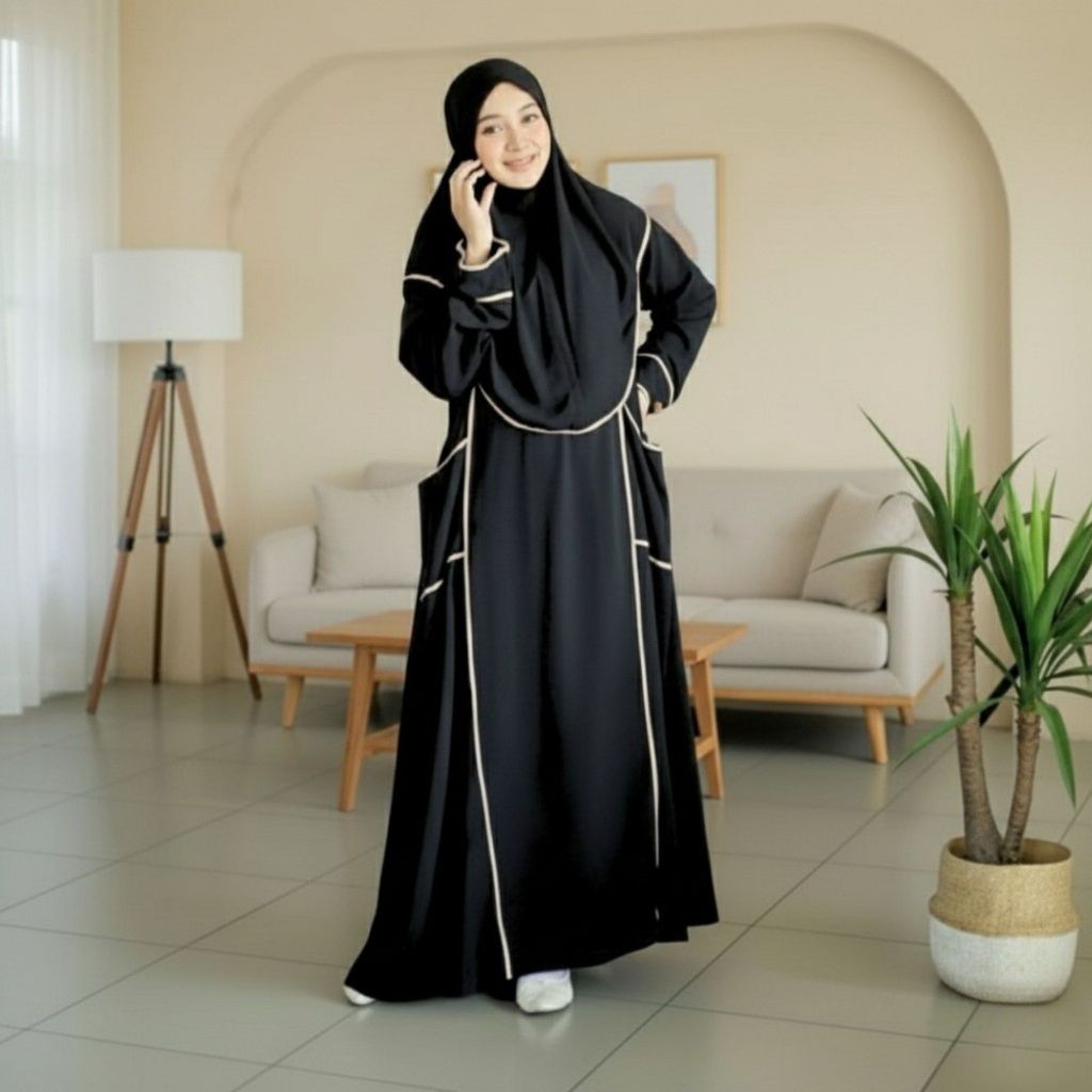 Gamis Abaya Set Hijab Syari – Bahan Adem Nyaman, Gamis Lebaran Wanita Terbaru 2025