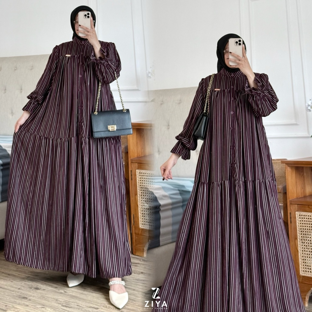 NADRA DRESS By ZIYA Gamis Lebaran Rayon Premium motif salur