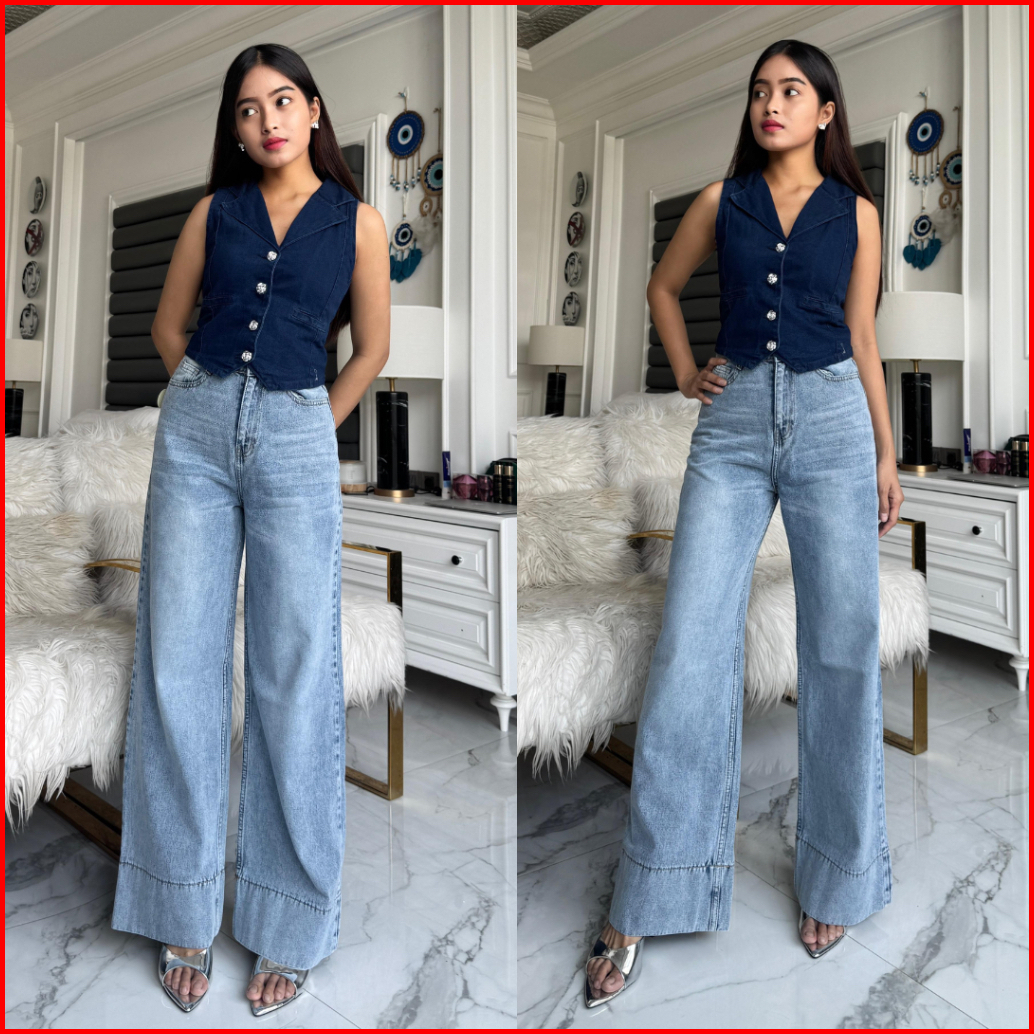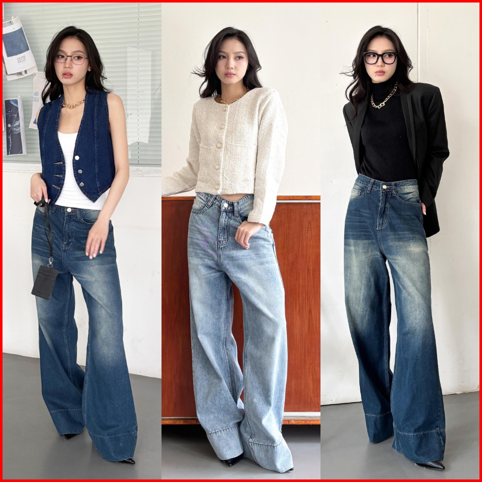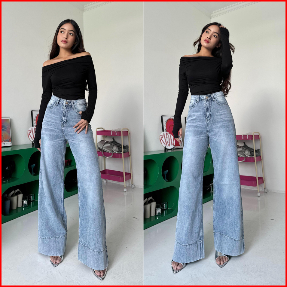 Ladouce - Jennie High Waist Baggy Jeans Celana Panjang Denim Wanita