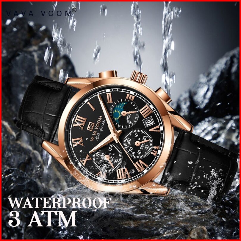 Vavavoom Jam Tangan Pria Original Chronograph Multifungsi Anti Air Tahan Kulit Mode Analog Men Watch 2751